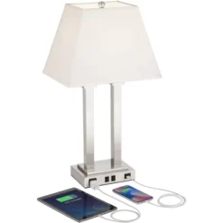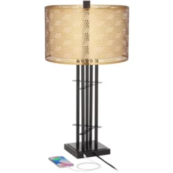 Possini Euro Design Camber Workstation Warm Gold Swing Arm Desk Lamp With Outlet And USB Port